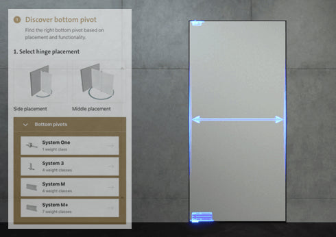 Easily find the right FritsJurgens pivot hinge model and type, then configure your own FritsJurgens pivot hinge set.