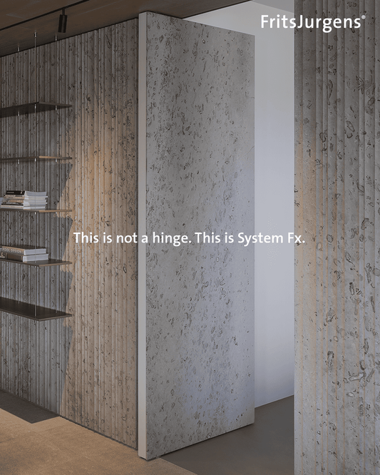 This is not a hinge. This is the new System Fx by FritsJurgens. Created to transform, designed to inspire, built to last.System Fx is the latest innovation in FritsJurgens collection of cutting-edge designs. FritsJurgens System Fx delivers maintenance-free movement for at least a lifetime.  Powerful in every single aspect. FritsJurgens new System Fx holds your pivot doors in position at 0°, 90°, 180°, and 270°. Precision-engineered for smooth, exact positioning. System Fx is the ultimate pivot system for high-traffic areas where the door mostly needs to remain open in a single hold position.