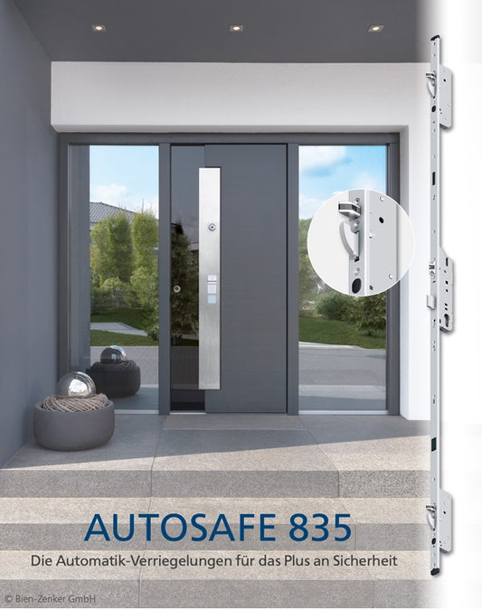 The new Autosafe 835 multipoint locking system developed by Fuhr offers enhanced door security along with high user comfort. These multipoint locks are available for wooden, PVC, and aluminum doors. They feature a new combination of bolts for reliable locking, as well as robust deadbolts, ensuring strong locking and optimal sealing. Additionally, they provide a comfortable two-step opening process and flexibility with motorized or motorizable options. This system is compatible with existing programs, allowing it to be used with the same machining and frame accessories!